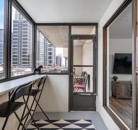 Lägenheten Cozy & Spacious 2Br In Downtown Very Close To Stampede And 17Th Ave With Parking And Ac har uteplats, balkong och sitthörna, luftkonditionering, samt utsikt över staden. Lägenheten erbjuder gästerna bekvämligheter som torktumlare, badlakan och handdukar i badrummet.